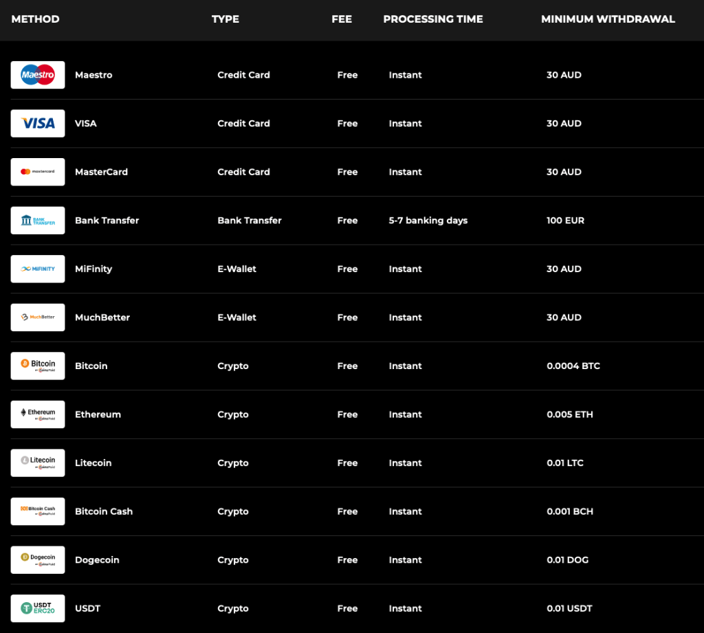 For those who prefer to use cryptocurrency, N1Bet Casino also offers this as a deposit method. We accept Bitcoin, Ethereum, Litecoin, and Bitcoin Cash. Cryptocurrencies are a convenient and secure way to make online payments. Simply select cryptocurrency as your preferred deposit method and then follow the instructions on how to complete the transaction.